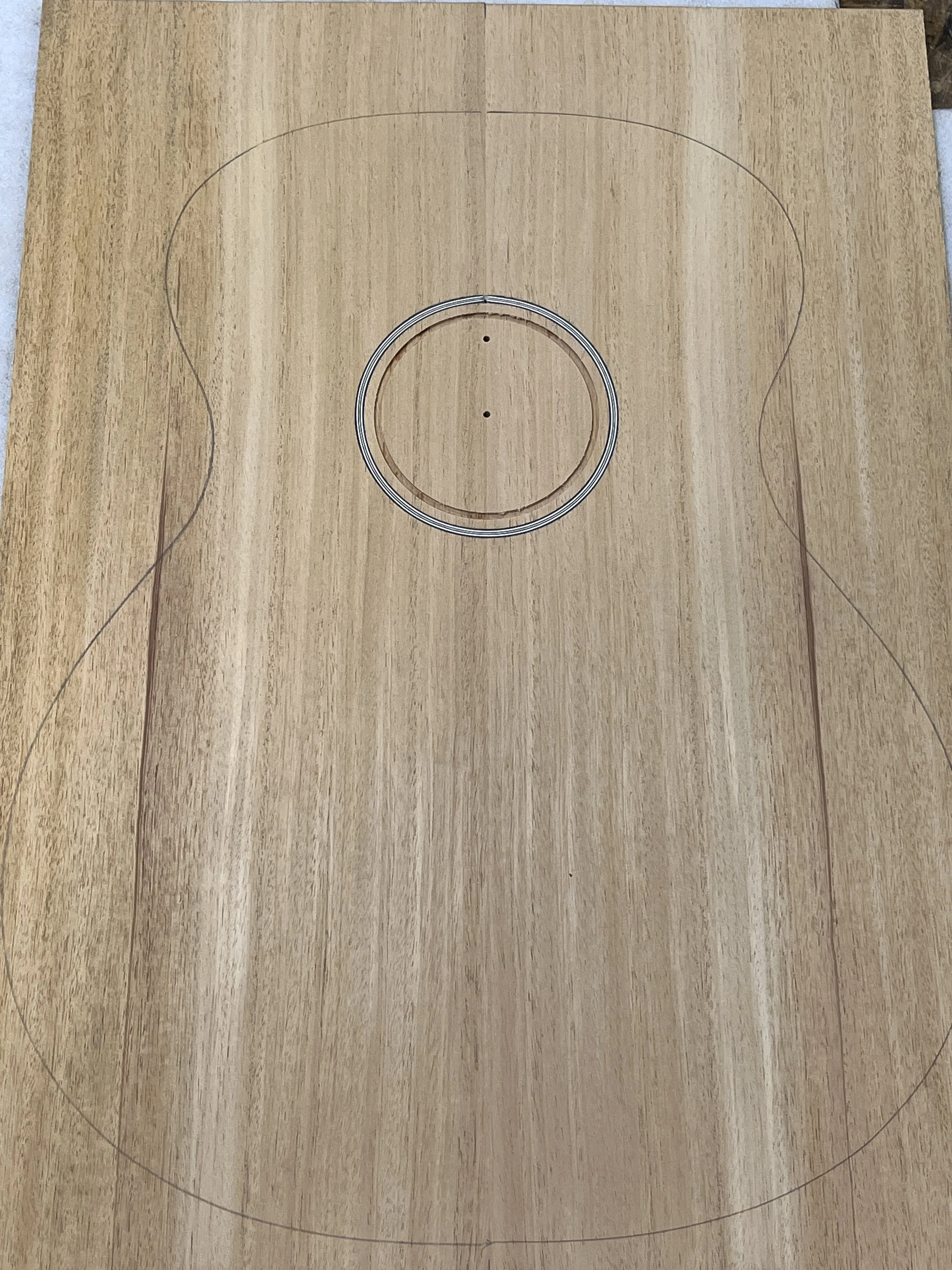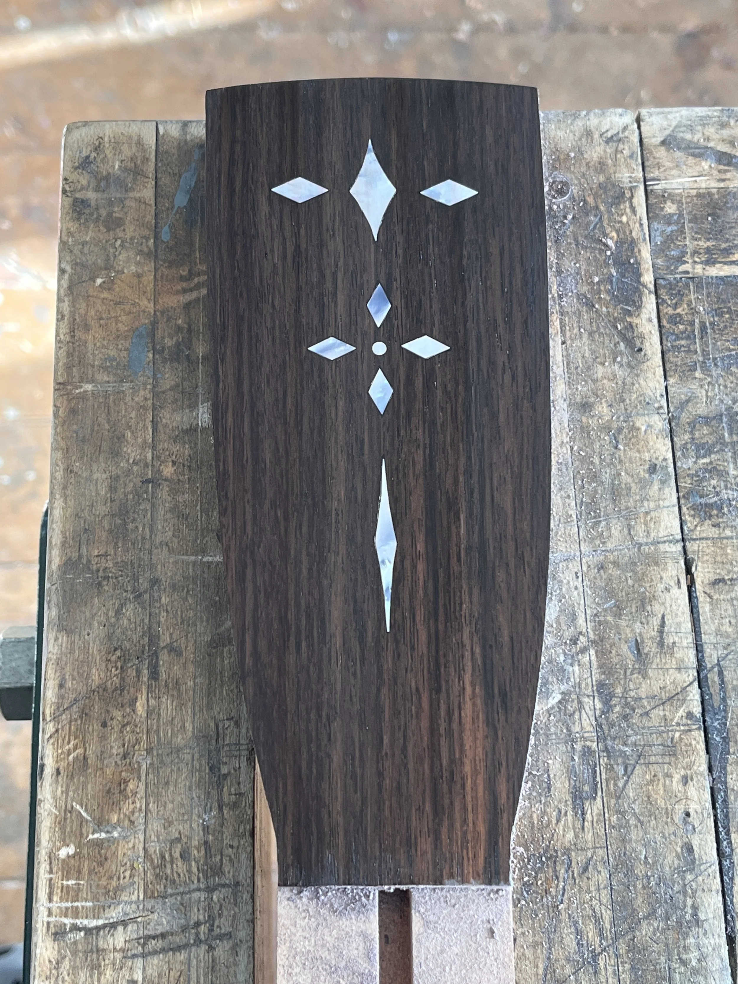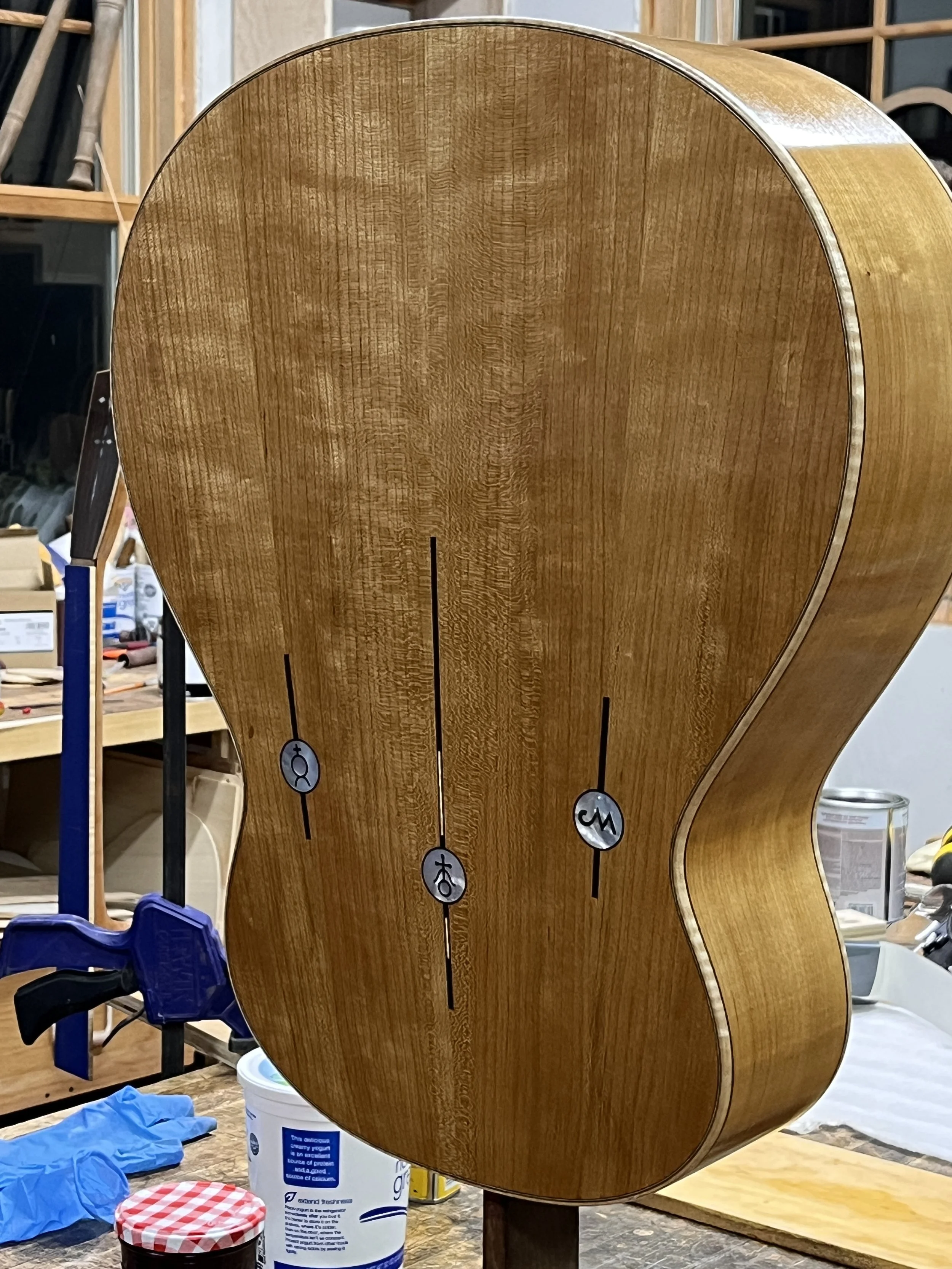 There are some inlays on the back that are symbolic to the client (and we are embracing the 4 piece back with the layout of the inlays):